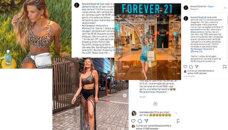 I coordinate strategies for brands to interact with influencers and reach new audiences. First, I research the exact creator that matches the brand’s public personality. Then I organize the content line, posting schedule, and format. For Forever21 Brazil, I selected 12 influencers in seven different cities to promote the Summer Sale and Carnival campaigns.